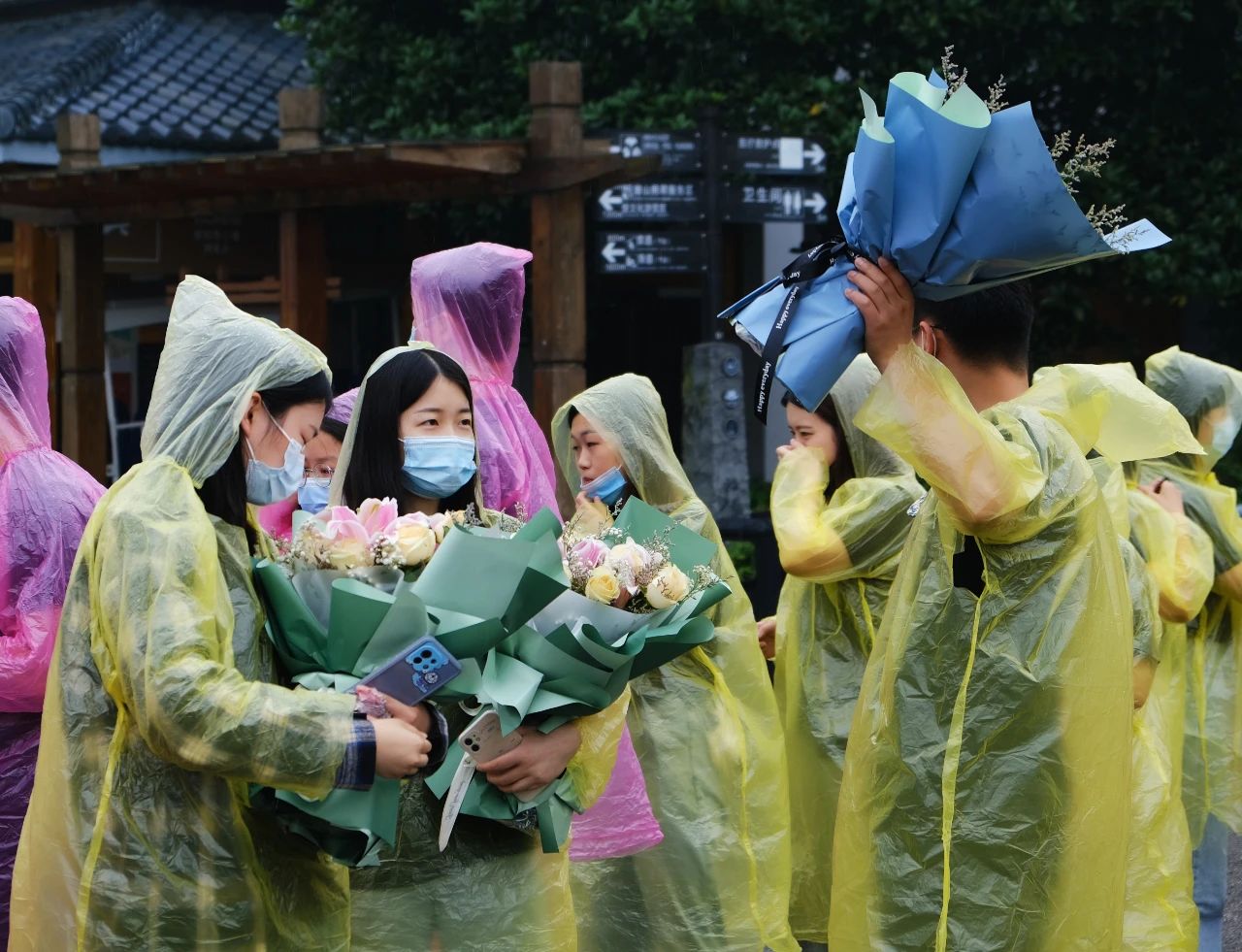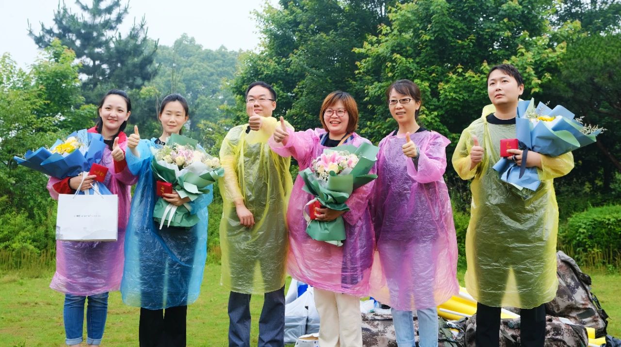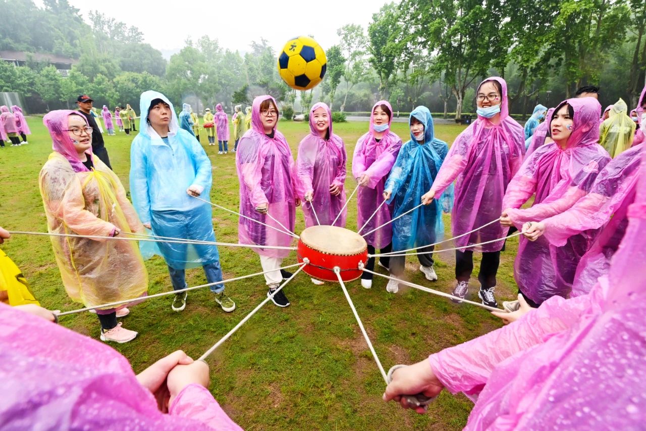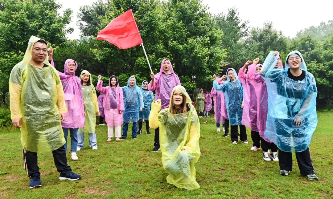 活動當天雖當天上午持續(xù)陰雨連綿,但是出游的同事們并未停下腳步,路途大巴上交談甚歡載歌載舞,欣喜之情溢于言表,穿上花花綠綠的雨衣在雨霧中穿行,在東湖磨山水墨畫一般的景色中劃出一條彩色的長線,亦是一道別樣的風景。