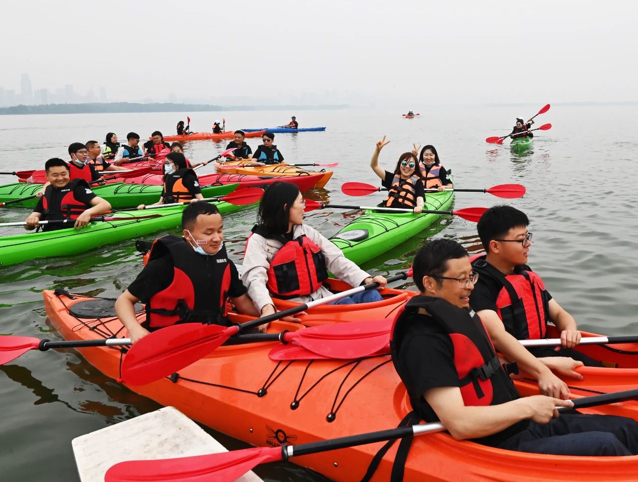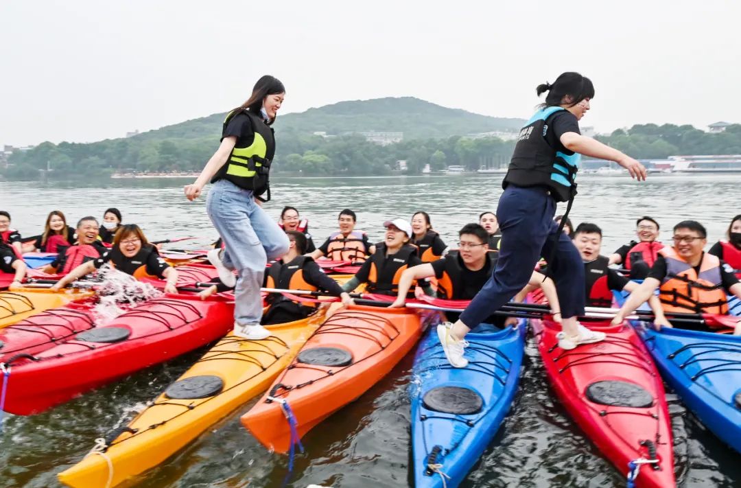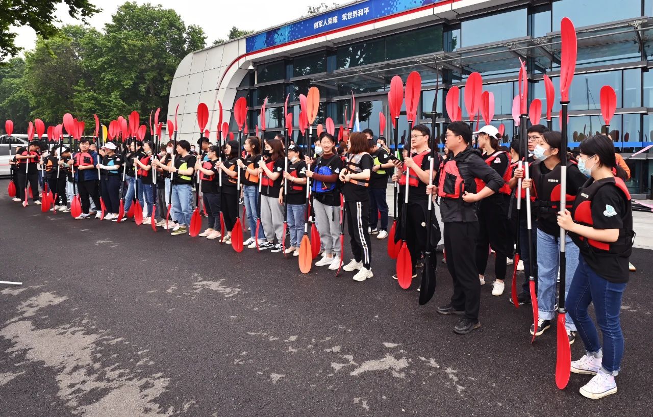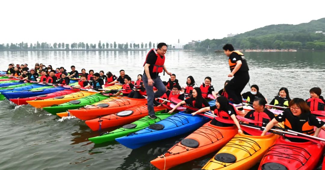 接下來是皮劃艇環(huán)節(jié),五顏六色的皮劃艇整齊的排列在地上,小伙伴們早已迫不及待的穿上了救生衣,拿起了船槳,整齊的方陣蠢蠢欲動,頗有“百萬雄師過大江”的氣勢。