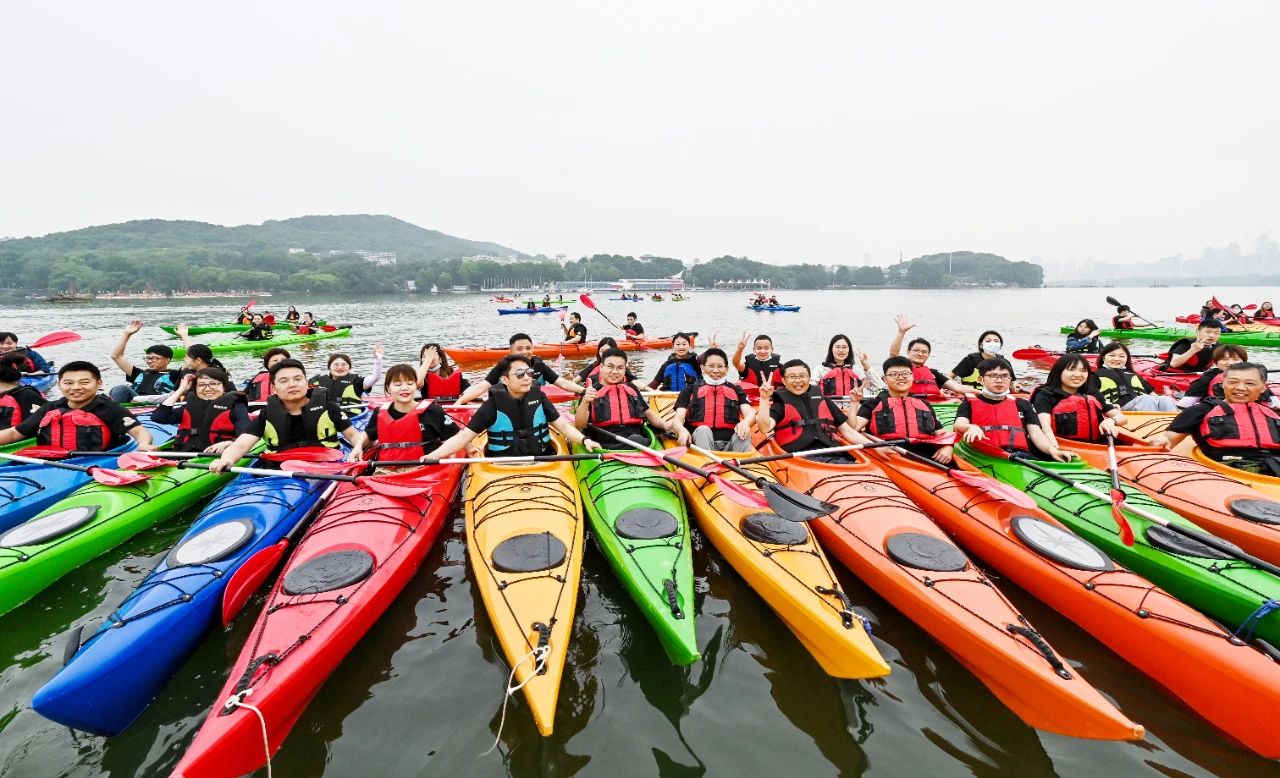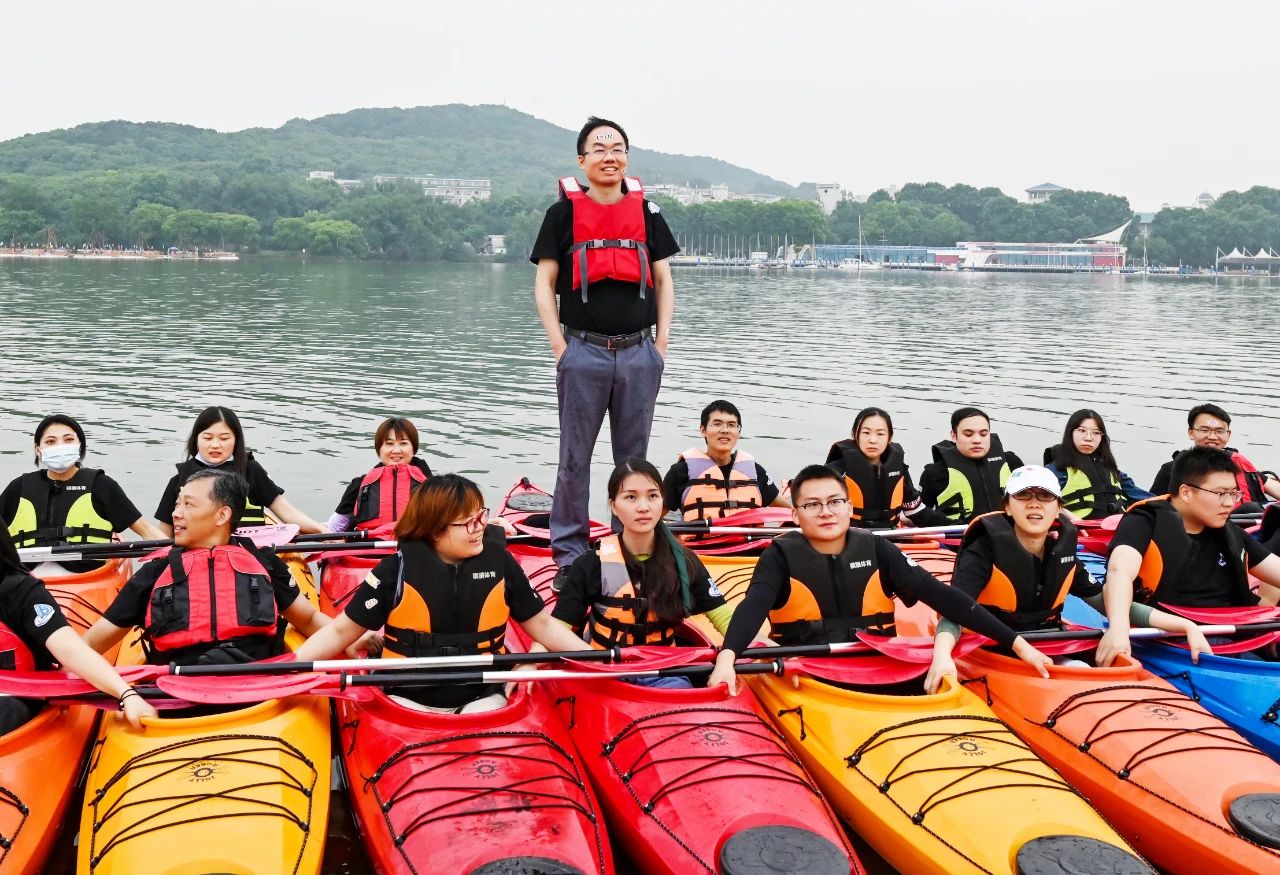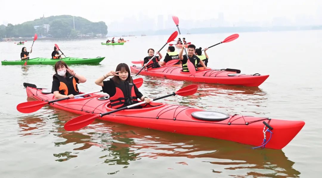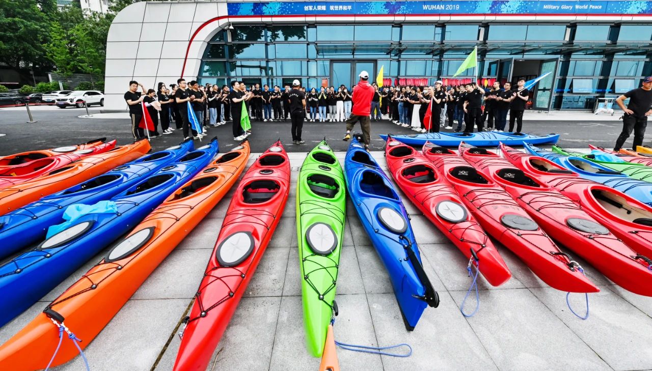 接下來是皮劃艇環(huán)節(jié),五顏六色的皮劃艇整齊的排列在地上,小伙伴們早已迫不及待的穿上了救生衣,拿起了船槳,整齊的方陣蠢蠢欲動,頗有“百萬雄師過大江”的氣勢。