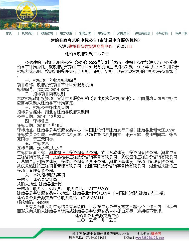 【經(jīng)營成果】我司入選建始縣政府投資項目審計中介服務(wù)機構(gòu)庫
