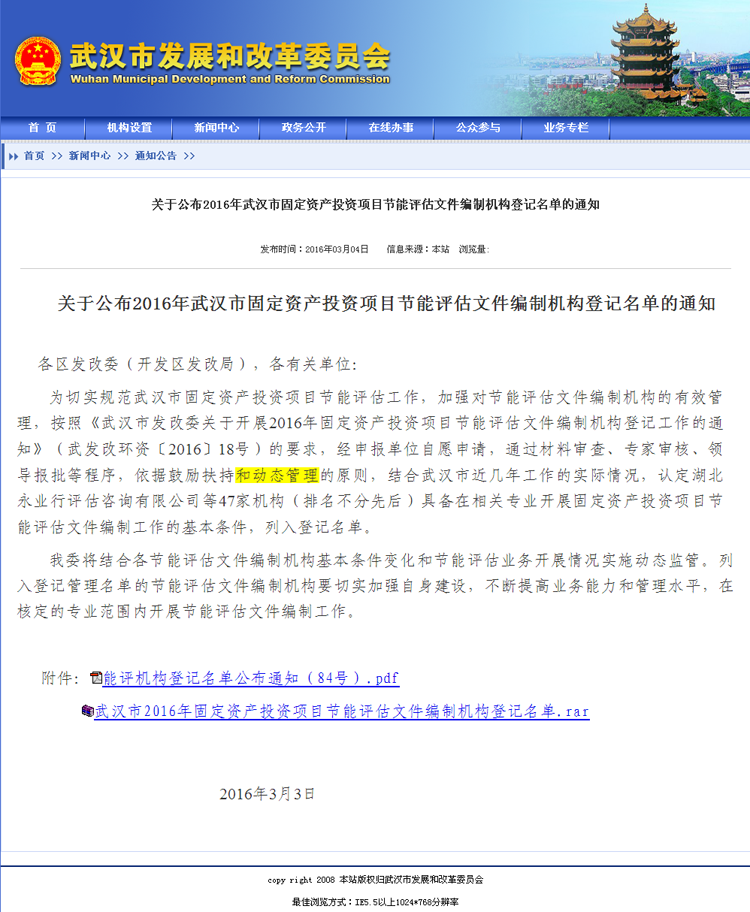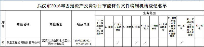 【經(jīng)營(yíng)成果】我司入選2016年武漢市固定資產(chǎn)投資項(xiàng)目節(jié)能評(píng)估文件編制機(jī)構(gòu)登記名單