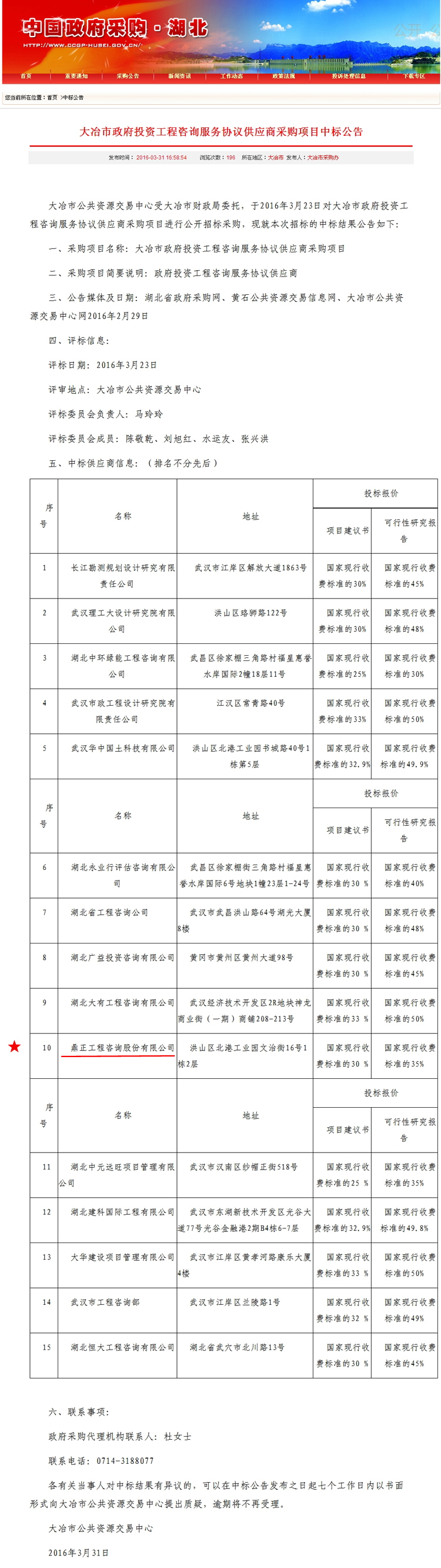【經(jīng)營成果】我司中標大冶市政府投資工程咨詢服務協(xié)議供應商采購項目