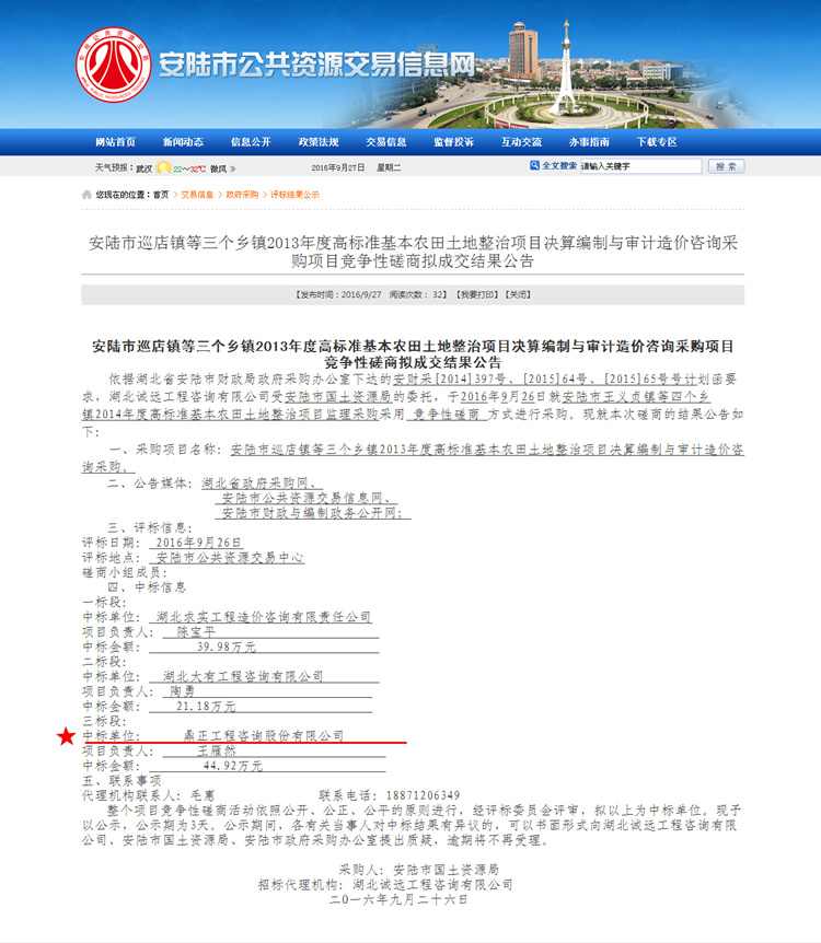 【經(jīng)營(yíng)成果】我司中標(biāo)安陸市巡店鎮(zhèn)等三個(gè)鄉(xiāng)鎮(zhèn)2013年度高標(biāo)準(zhǔn)基本農(nóng)田土地整治項(xiàng)目決算編制與審計(jì)造價(jià)咨詢采購(gòu)項(xiàng)目