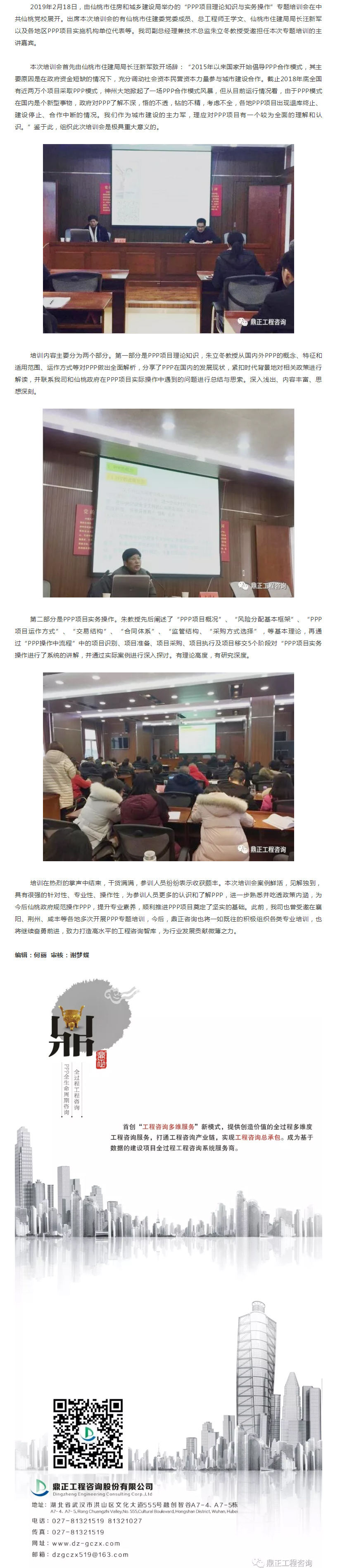 我司技術總監(jiān)朱立冬教授受邀赴仙桃開展PPP理論與實務專題培訓