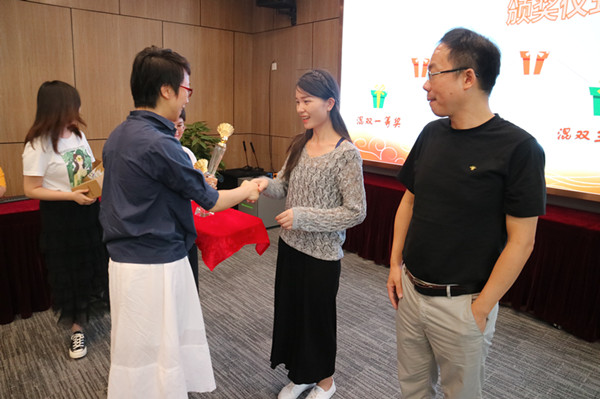 董事長王雁然為混雙一等獎獲得者毛迎霞、張虎頒獎