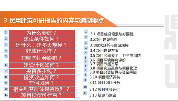 上午,來自工程咨詢一部的余國秋做了《民用建筑可行性研究報告編制要點與實務(wù)》的主題分享。余國秋從可行性研究基本認識、民用建筑可行性研究報告編制要點、可行性研究實務(wù)三個方面展開,重點闡述了做可行性研究報告的必要性,怎么做可行性研究報告。