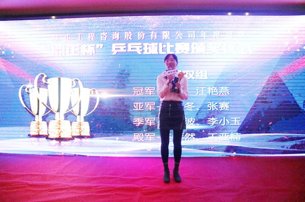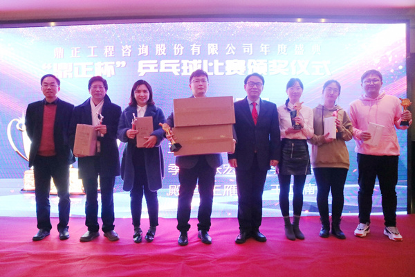 隨后,頒獎(jiǎng)典禮正式開始。首先進(jìn)行的是鼎正咨詢歷屆傳統(tǒng)環(huán)節(jié)第七屆“鼎正杯”乒乓球比賽頒獎(jiǎng)儀式。鼎正運(yùn)動(dòng)健兒們在本屆乒乓球比賽中盡情揮灑著激情與汗水,充分展現(xiàn)了鼎正人團(tuán)結(jié)向上、自強(qiáng)不息的精神風(fēng)貌。