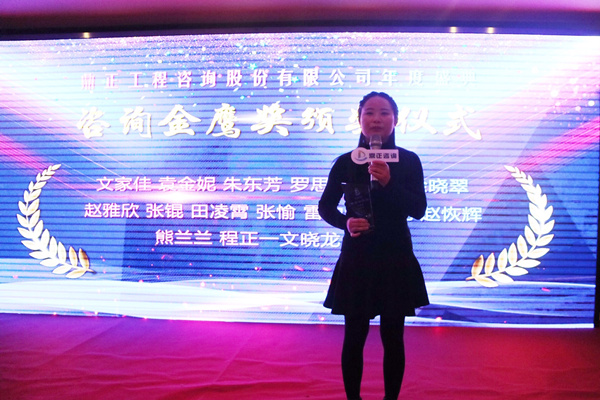 ▲技術(shù)總監(jiān)朱立冬、副總姚建功頒發(fā)咨詢金鷹獎(jiǎng),徐曉翠代表發(fā)言