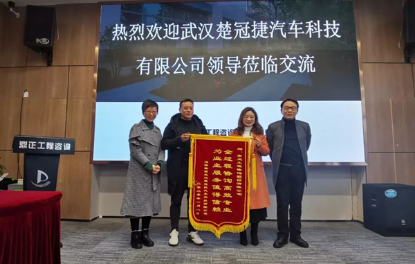 2020年1月14日,武漢楚冠捷汽車科技有限公司龔經(jīng)理、朱主任蒞臨鼎正咨詢公司,特向?yàn)槠涠趶S房建設(shè)項(xiàng)目提供全過(guò)程工程咨詢服務(wù)的鼎正咨詢團(tuán)隊(duì)及項(xiàng)目負(fù)責(zé)人程正一贈(zèng)送錦旗并表達(dá)感謝。
